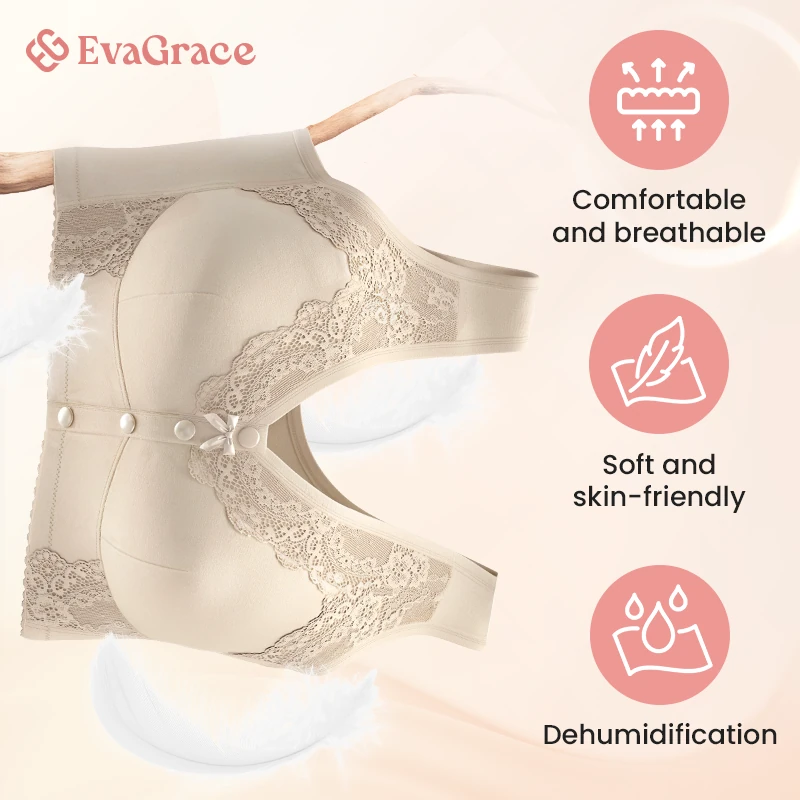 Put on and take off your bra with ease thanks to EvaGrace Bra's quick snap front button design. This can help you solve this problem, freeing your hands and eliminating the awkward position of wearing a bra.
